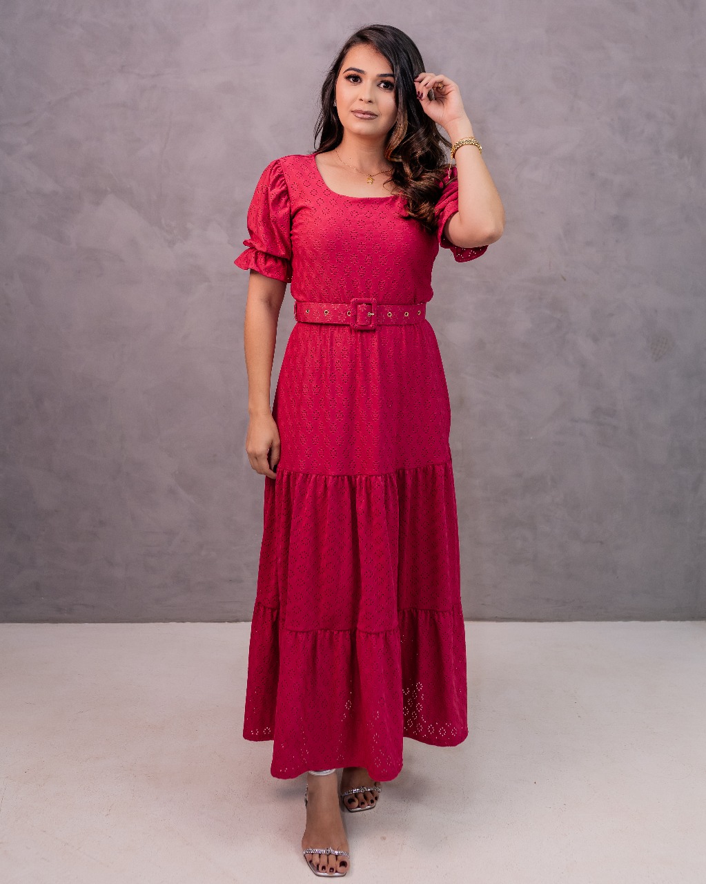 Um vestido versátil, delicado e cheio de elegância, ideal para cultos, eventos especiais e momentos onde a beleza suave faz toda a diferença.